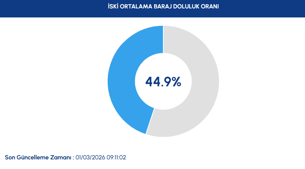 İstanbul’daki barajların doluluk oranları gündemde. İSKİ’nin 1 Mart 2026 verilerine göre, barajların toplam doluluk oranı yüzde 44,9 seviyesinde.